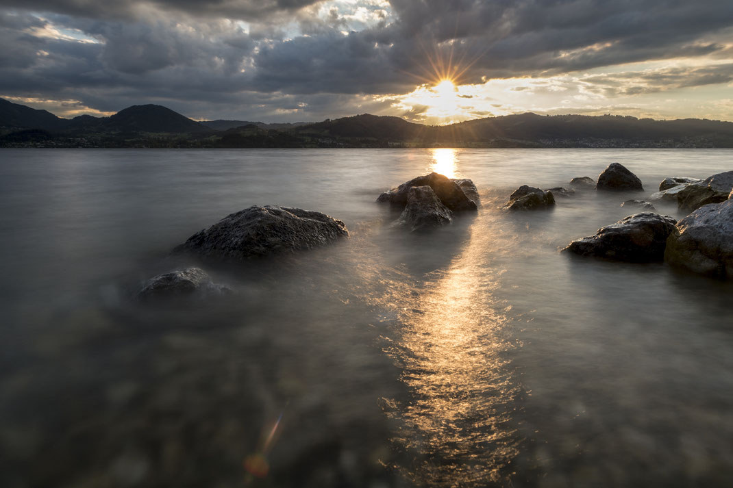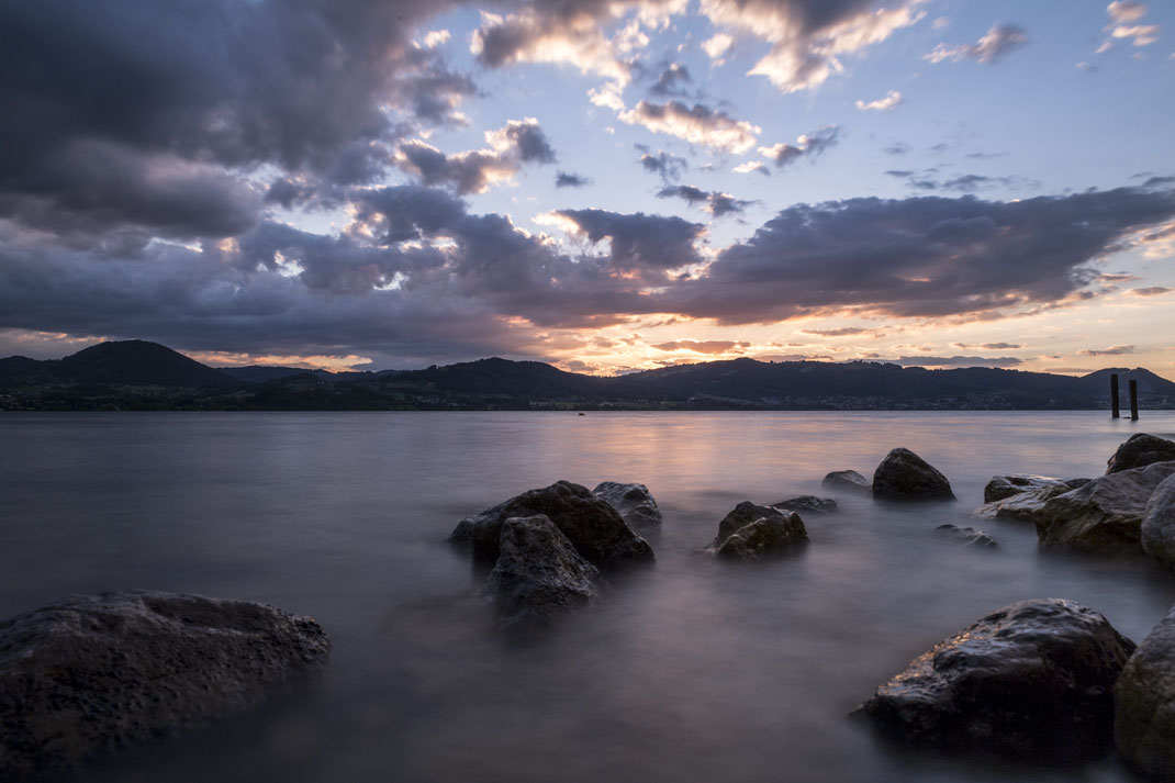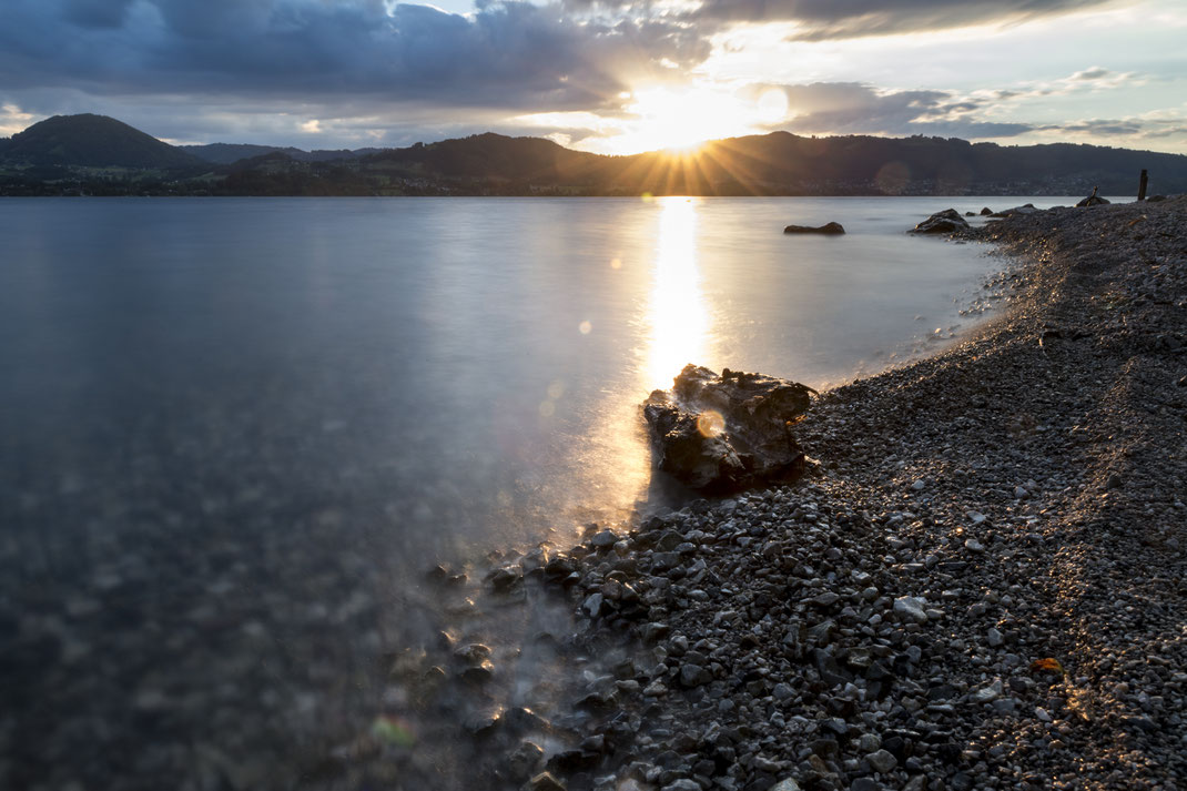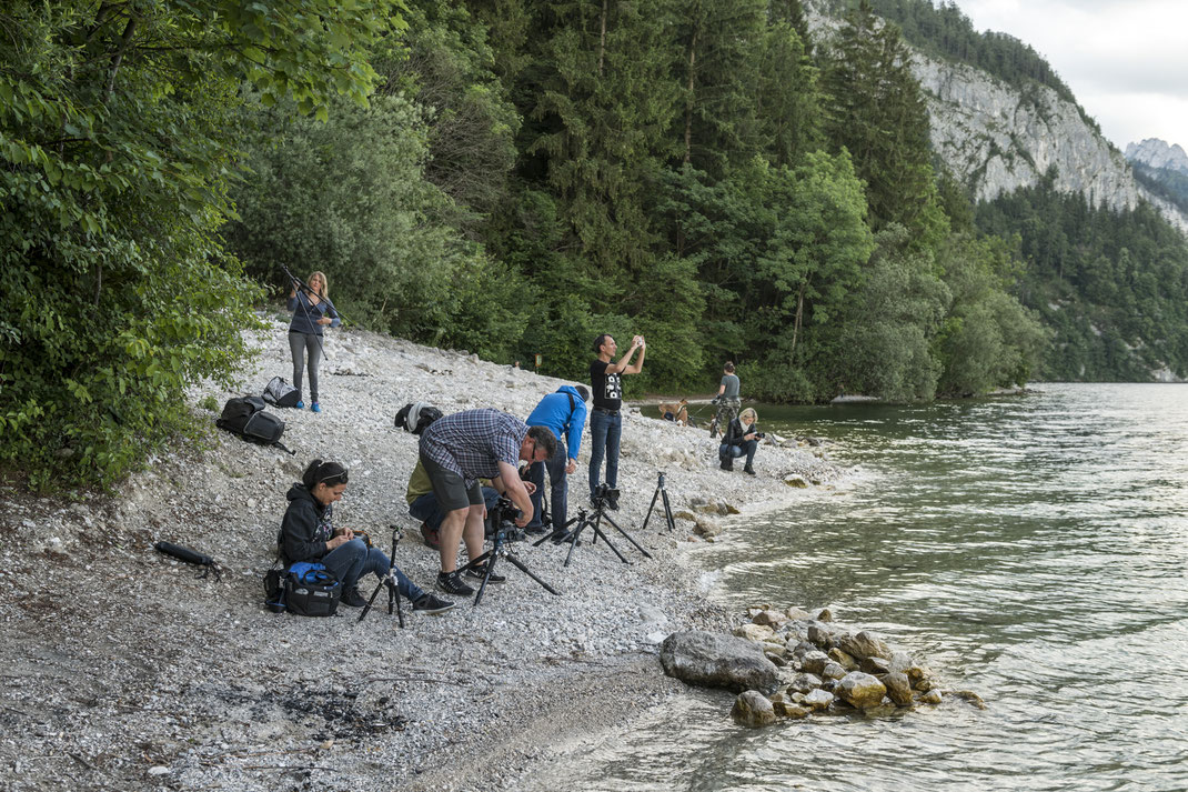 Der letzte Fotospot des Tages war einer von Annas Lieblingsplätzen am Traunsee, von wo man den Sonnenuntergang herrlich sehen konnte. Da wir bereits etwas spät dran waren, wurde bei der Hinfahrt schon der ein oder andere Geschwindigkeitsvorschlag der StVO dankend abgelehnt... Nach einem kurzen Marsch haben wir dann einen Kiesstrand erreicht. Und ja, jetzt verstehen wir Anna, dass dies einer ihrer Lieblingsplätze ist... Sofort bauten wir die Stative auf und versuchten die wunderbare Lichtstimmung einzufangen. Dabei trugen wir mit unserem Einsatz und Haltung schon für den ein oder anderen Lacher bei den Wanderern bei. Aber es hat sich geloht! Es entstanden traumhaftschöne Fotos an diesem Abend. Nach einem kurzen Drohenflug von Martin, sind wir wieder zurückgefahren und haben den Abend mit einigen Cocktails ausklingen lassen.