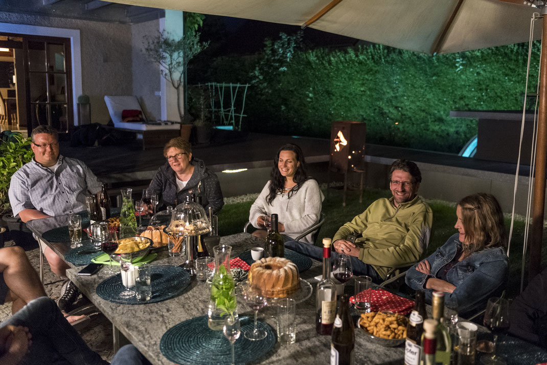 Am Freitag war es dann endlich soweit. Am Nachmittag sind wir von Graz Richtung Schwanenstadt aufgebrochen. Anna und Dominik haben bereits alle Schlafplätze, die Getränke und Essen vorbereitet. Die erste Stunde kamen wir aus dem Staunen und Bewundern des tollen Anwesens nicht hinaus. Immer wieder entdeckten wir liebevolle Details im Haus und Garten und man merkt, dass in diesem Haus gewohnt wird... Anschließend erfrischten wir uns im herrlich warmen Pool. Danach beschlossen wir heute nicht mehr fotografieren zu gehen, da wir erstens uns einen schönen Abend machen wollten und zweitens wir schon das ein oder andere Glas Bowle intus hatten. Dominik hat uns dann perfekt begrillt und Anna mit Salaten und Zuspeisen versorgt. Satt und zufrieden haben wir, aufgrund der schlechten Wettervorhersage beschlossen, in der Früh nicht aufzustehen. Diese Entscheidung hat den Rest des Abends schon beeinflusst, da dadurch das ein oder andere alkoholische Getränk mehr konsumiert wurde. Wir haben im Garten getratscht, geblödelt, getrunken und gelacht. Erst nach Mitternacht sind wir dann müde in die Betten gefallen. Anna und Dominik haben danach noch die Küche aufgeräumt...