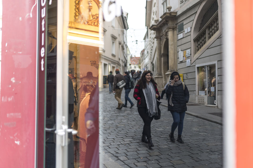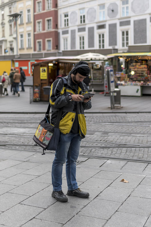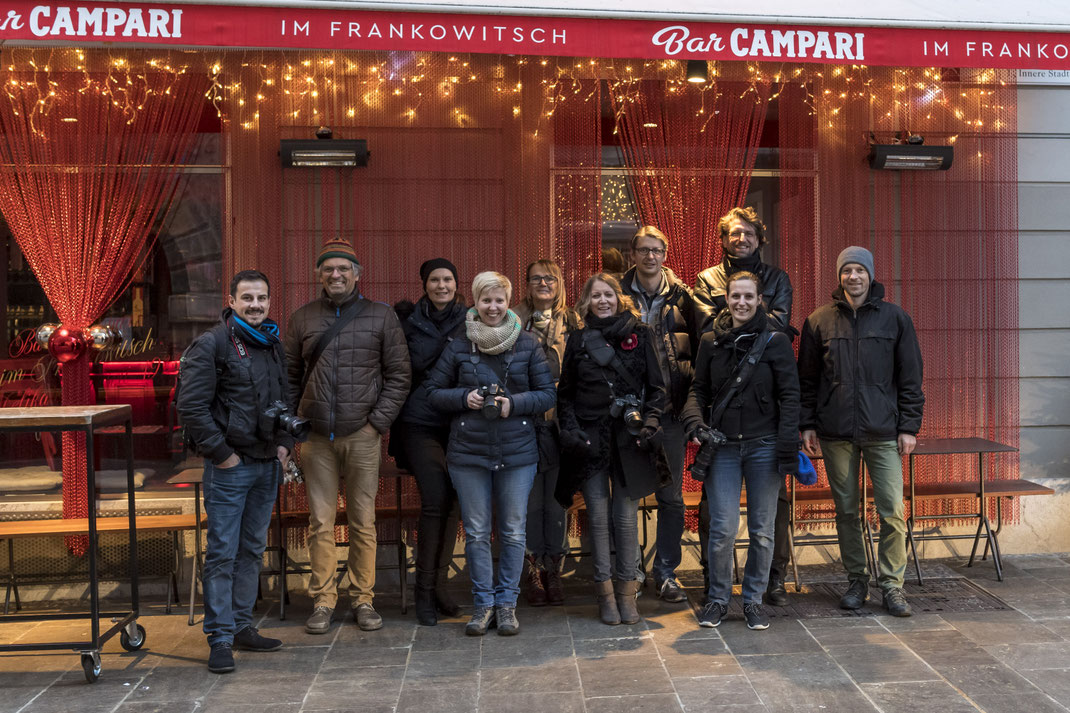 Unser Novemberfotospaziergang führte uns wieder nach Graz. Am Programm stand diesmal Streetfotografie. Ganze 10 Fotografen haben sich beim Kunsthaus getroffen und spazierten bei ungemütlichem Wetter Richtung Innenstadt. Obwohl es Sonntag war, schienen die Menschen auf den Straßen ziemlich gestresst und schlecht gelaunt. Wahrscheinlich ließ sich das auf das Wetter zurückzuführen... Sicher kann es unter umständen auch daran gelegen haben, dass 10 Fotografen mit ihren riesigen Kameras auf die selben Menschen „zielten“. So wurden wir schon mehrmals angepöbelt. Einige Teilnehmer wechselten dann ihre Objektive, von der klassischen Streetfotografiebrennweite 35mm auf ein Tele, um aus sicherer Entfernung fotografieren zu können. Trotzdem ergaben sich nicht mehr Motive. Daraufhin beschlossen wir, uns mit einem Glühwein „Mut“ anzutrinken. Nach der warmen Köstlichkeit machten wir voll motiviert weiter, doch wir übersahen die Zeit und es begann schon leicht zu dämmern. So sind wir dann direkt über den Hauptplatz ins Joaneumviertel gegangen und haben den Fotospziergang mit einem zweiten Glühwein ausklingen lassen. Streetfotografie macht im Sommer einfach mehr Spaß...