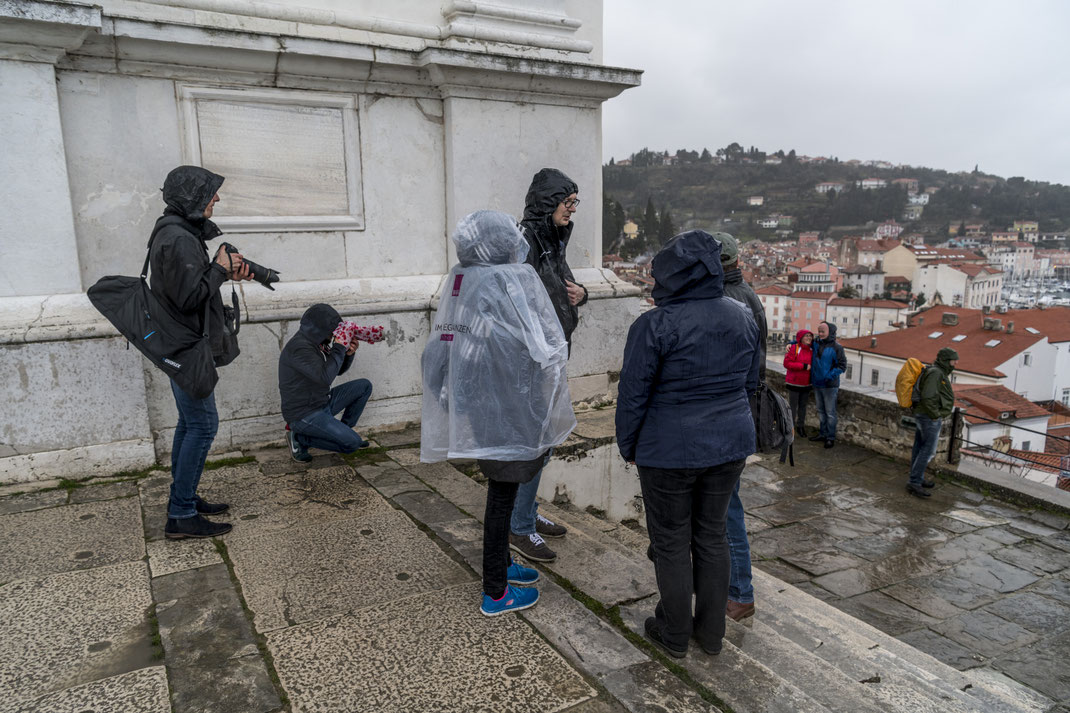 Nachdem unsere Fotoreise im letzten Jahr zum Lostplace und ans Meer in Malinska ein voller Erfolg war, haben wir auch heuer einen Ausflug an die Adriaküste geplant. Die klare Luft, die Farben des Meeres und die wenigen Menschen zu dieser Jahreszeit haben uns damals fasziniert. Bei der Wahl der Lokation haben wir uns nach einigem hin und her auf Piran geeinigt. Ein paar Tage vor unserer Reise wurde es aber noch einmal spannend, da unsere Hotelbuchung storniert wurde und die Rückkehr des Winters vorhergesagt wurde... Wir ließen uns aber nicht abhalten, haben ein alternatives Hotel in Portoroz gebucht und sind bereits bei leichtem Regen in Österreich Richtung Süden aufgebrochen. Zwischendurch öffnete der Himmel seine Pforten, sodass wir schon zweifelnden ob es eine gute Idee war, zu fahren... Knapp 50-60 km vor dem Ziel hörte der Regen auf und Erleichterung setzte ein. Nachdem wir das Zimmer bezogen und uns mit einem Kaffee gestärkt hatten konnten wir es nicht mehr erwarten loszulegen. Im Hotel wurde uns mitgeteilt, dass wir zu Fuß entlang der Küste ca. 25-30 Minuten nach Piran brauchen werden. Pensionisten brauchen in der Regel ca. 40-45 Minuten. Leider gab es keine eigenen Zeiten für Fotoklubs, denn die 40 Minuten haben wir schon beim ersten Fotostopp „verbraucht“. Obwohl es bewölkt war, war die Luft klar und das Meer sehr schön. So gab es sehr viel für uns zu entdecken… Nachdem wir nach 90 Minuten erst die halbe Strecke zurückgelegt hatten und schon ziemlich hungrig und durstig waren, steigerten wir unser Tempo. Dies wurde von Norberts Smartwatch prompt mit „Sie haben eine gesunde Geschwindigkeit“ kommentiert… Am Beginn der Altstadt von Piran haben wir endlich ein Lokal für 14 durstige und hungrige Fotografen gefunden und fast einheitlich Pivo und Cevapcici bestellt. Für einen Kaffee und Kuchen blieb aber keine Zeit. Gut gestärkt spazierten wir entlang des Hafens zum Tartini Square und versuchten die zahlreichen Motive, angefangen vom Hafen über die Fischerboote bis hin zu den venezianischen alten Häuser, einzufangen. Dort begann es leider wieder leicht zu regnen, sodass wir doch noch zu unserem Kaffee kamen ;-). Einige Teilnehmer bestellten eine heiße Schokolade und waren ziemlich überrascht was der Kellner brachte. Nämlich keinen Kakao wie erwartet, sondern wirklich eine heiße Schokolade, deren Konsistenz einem Pudding ähnelte. Nachdem die „Tafel geschmolzener Schokolade“ ausgelöffelt war, wagten wir uns wieder raus und spazierten durch ein paar enge Gassen zur St. George's Parish Church. Leider meinte es der Wettergott nicht gut mit uns und es begann wieder zu regnen. Da der Himmel keinerlei Hoffnung auf Besserung zuließ, entschlossen wir uns zurück ins Hotel zu fahren und dies 30 Minuten vor der blauen Stunde… Wir scheiterten leider kläglich daran, diese Wegstrecke mit einem öffentlichen Verkehrsmittel zurückzulegen, daher nahmen wir die noble Taxivariante in Anspruch… Die zwei Stunden bis zum gemeinsamen Abendessen wurden unterschiedlich genutzt. Die einen gingen in den Wellness-Bereich (Hut ab vor dem Fotograf – im Internet sah das Ganze riesig aus) oder betrachteten bereits ihre Bilder oder brauchten das ein oder andere Bier um den „Frust“ wegzuspülen… In einer nahegelegenen Pizzeria aßen wir gemeinsam und schmiedeten den Plan für den nächsten Tag. Nachdem es noch nicht so spät war, wollten wir es uns an der Hotel-Bar noch gemütlich machen, aber mehr als ein Getränk schaute nicht heraus. Die Bar diente eher „Dekorationszwecken“ und so mussten wir noch vor Mitternacht ins Bett…