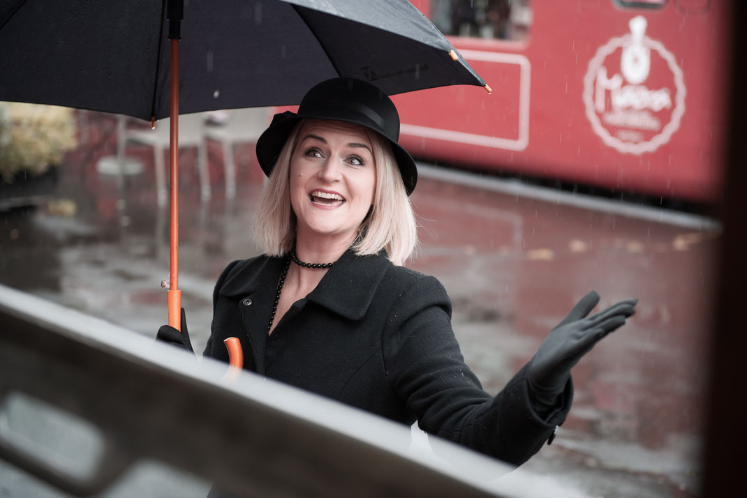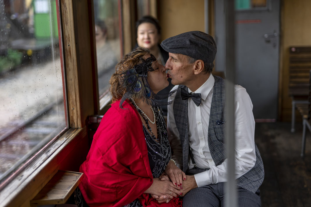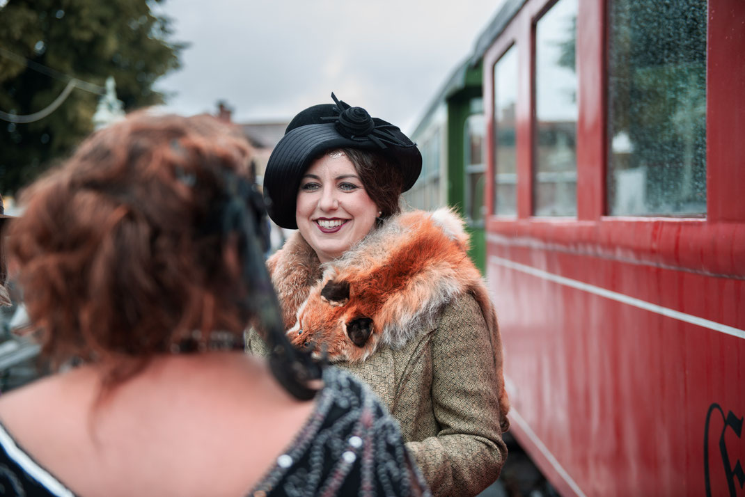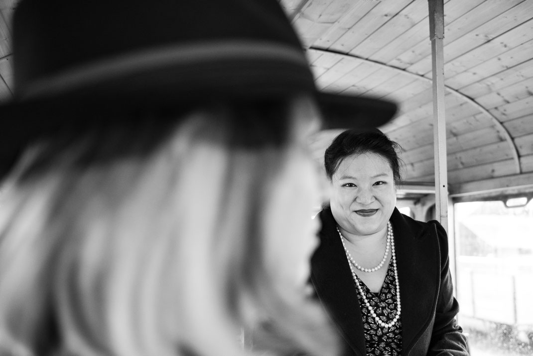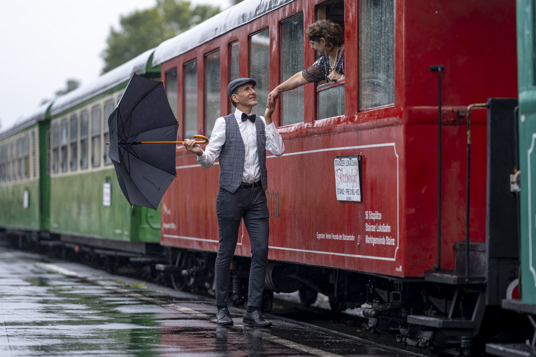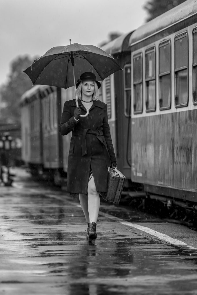 Nach kurzer Rücksprache mit der Fahrleitung, starteten wir dann auch schon mit dem Shooting. An dieser Stelle gleich ein großes Danke an das Team des Stainzer Flascherlzugs, dass wir uns frei durch das Gelände und die Wagons bewegen durften. Da es noch regnete, begannen wir in den Wagons mit den Porträts. Wir brauchten am Anfang ein wenig Zeit bis wir uns aufgeteilt haben, denn diesmal waren alle 8 Teilnehmer Modells aber nicht alle 8 auch Fotografen. Jeder hatte schon einige Bilder im Kopf, welche nun umgesetzt werden sollten. Neben den Porträts im Zug oder der Spaziergang am Bahnsteig durfte eine klassische Verabschiedungsszene auch nicht fehlen. Unsere Modells fühlten sich in ihren Rollen sehr wohl und hatten sichtlich Spaß beim Shooting. Exakt führten sie alle Anweisungen der Fotografen aus und fügten mit ihren eigenen Interpretationen der Szenen auch noch da und dort ihre persönliche Note hinzu. Nach knapp 2 Stunden machten nicht nur der Regen sondern auch wir eine Pause.
