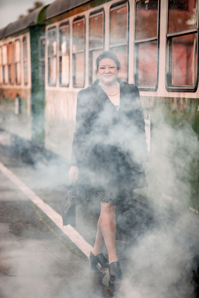 Bei Kaffee und Kuchen beschlossen wir doch nicht mit dem Zug mitzufahren, sondern am Bahnhof weiter zu fotografieren. Wir nutzen das historische Bahnhofsgebäude, die alten Wagons oder Gleise als Kulisse für unsere Fotos. Kurz vor Schluss entschieden wir uns dann auch noch die Nebelmaschine  anzuwerfen. Schnell das Notstromaggregat aufbauen, Verlängerungskabel verlegen und los gings. Da der Nebel, nein Dampf recht punktuell aus der Maschine kam, waren in Summe 3 Leute notwendig um diesen "realistisch" aussehen zu lassen. Die entstandenen Fotos waren aber den Aufwand wert.