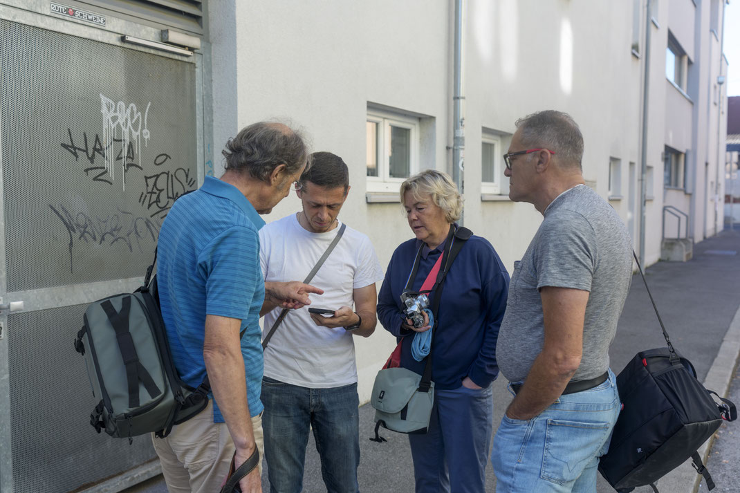 Nach einer kurzen Einweisung von Peter R. haben wir uns in zwei Teams zu je drei Personen aufgeteilt. Die Aufgabe war klar: Jeder sollte zwei Fotos von den anderen beiden Teammitglied direkt vor Ort machen.