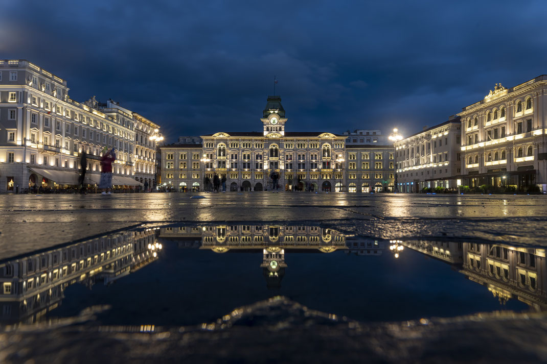 Den Samstag starteten wir mit einem ausgiebigen Frühstück im Hotel. Zuviel Zeit wollten wir uns aber nicht lassen, da es für Nachmittag regen vorhersagte. Heute stand ein gemütlicher Spaziergang durch Triest am Plan, wo wir an den wichtigsten Sehenswürdigkeiten vorbei kamen (die Route ist von Reise-Schreibmaschine.de). Unser Startpunkt war wieder der Canale Grande. Wir spazierten am Palazzo Gopcevich zur Molo Audace, einen Steinpier aus dem 18. Jahrhundert. Dort gab es viel zu Entdecken, daher verbrachten wir dort auch fast 1 Stunden. Weiter ging es über den Piazza Unità d'Italia ins jüdische Viertel. Dort gab es tolle Künstläden zu bestaunen. Was in Italien natürlich nicht fehlen darf, ist eine kurze Kaffeepause. In einer kleinen Straße fanden wir ein passendes Cafe mit genügend Plätzen und konnten mit Espresso und Cappuccino das Leben auf der Straße beobachten. Streetfotografie durfte daher auch nicht fehlen und dabei entstanden viele tolle Impressionen aus dem täglichen Leben. Danach ging es weiter über die Santa Maria Maggiore zur Cattedrale di San Gipst Martire und zum Castello di San Giusto, einem mittelalterlichem Schloß am Hügel der Stadt. Der herrlichen Blick über Triest und die Bucht ließ den mühsamen Anstieg durch die engen Gassen vergessen und auch Bea hat es mit den Krücken bis zur Aussichtsplattform geschafft. Da sich nun der Himmel aber etwas verdunkelte, beschlossen wir zuerst unsere Runde abzuschließen, bevor wir eine Pause einlegten. Bei unserem letzten Fotostopp, dem Teatro Romano di Trieste, eine Ruine eines römischen Amphitheaters begann es zu Regnen. Wir flüchteten in eine Bar, wo wir endlich unsere wohlverdiente Pause und Stärkung zu uns nehmen konnten. Wir hatten noch nicht bezahlt, war das schlechte Wetter auch schon wieder vorbei. Nachdem der Tag schon etwas anstrengend war, legten einige Teilnehmer noch eine Rast im Hotel ein. Der Rest nutzte die durch den Niederschlag entstandenen Pfützen zum Fotografieren mit Spiegelungen. Wir schlenderten wieder Richtung Piazza Unità d'Italia und Molo Audace. Obwohl es laut Wetterbericht den ganzen Nachmittag regnen sollte, kam jetzt sogar der eine oder andere Sonnenstrahl durch die Wolkendecken. Wir gingen an das Ende des Steinpiers um den möglichen Sonnenuntergang zu sehen und fotografisch festzuhalten. 10 Minuten vorher legte jedoch die Costa Deliziosa ab und „drohte“ unseren Blick auf den Horizont zu verdecken. Dann bot uns aber das aufs Meer fahrende Kreuzfahrtschiff ein wundervolles Motiv. Leider spitzelte die Sonne nur ein bisschen heraus und der Sonnenstern fiel eher bescheiden aus. Alles kann man nicht haben… Die blaue Stunde verbrachten wir wieder am selben Platz wie gestern. Nach den ersten Fotos sahen wir uns an und meinten, wow - die Fotos von heute mit den Spiegelungen sind richtig cool und wir können die Aufnahmen von gestern fast vergessen. Zum Glück haben wir die noch nicht bearbeitet ;-) Das Rezept war sehr einfach - tiefer Standpunkt, am besten Kamera mit Weitwinkel auf den Boden legen, eine kleine Pfütze davor für die Spiegelung und Abdrücken. Ungefähr 10 Sekunden später war ein Kalenderfoto fertig. Kurz nach 19 Uhr machten wir uns dann auf den Weg zum Abendessen. Bei der geplanten Reservierung gab es jedoch ein Missverständnis und daher mussten wir uns ein neues Lokal suchen, wurden aber mit Hilfe eines einheimischen Guide schnell wieder fündig. Beim Essen ließen wir den Tag anhand der Bilder auf den Kameras Revue passieren und waren sehr zufrieden mit der Ausbeute und konnten unser Wetterglück noch nicht ganz fassen. Danach ging ein Teil der Gruppe aufgrund des doch anstrengenden Tages gleich zurück ins Hotel, der Rest machte noch die ein oder andere Bar unsicher.